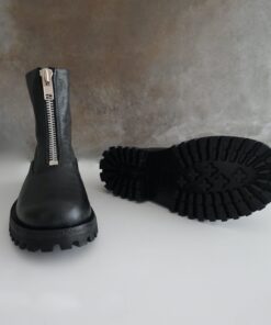 Los materiales premium, nacionales y de importación, aseguran mayor durabilidad y estética. El acabado final de la piel en negro mate hace que resalte el carácter único del botín.